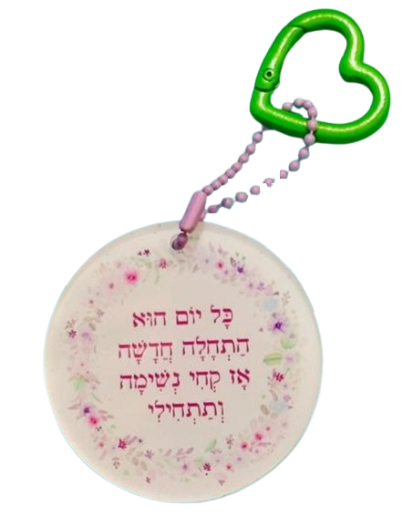 מחזיק מפתחות עם מסר מעצים. קוטר 5 ס"מ. אורך מקצה לקצה 10 ס"מ. צבע הלב והשרשרת משתנה ויישלח באקראיות.