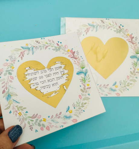 גלויה בגודל 15*15 ס"מ עם לב זהב שמגדרים אותו ומתחת מסתתר משפט מעורר השראה. כמו עוגיית מזל רק בלי קלוריות :)