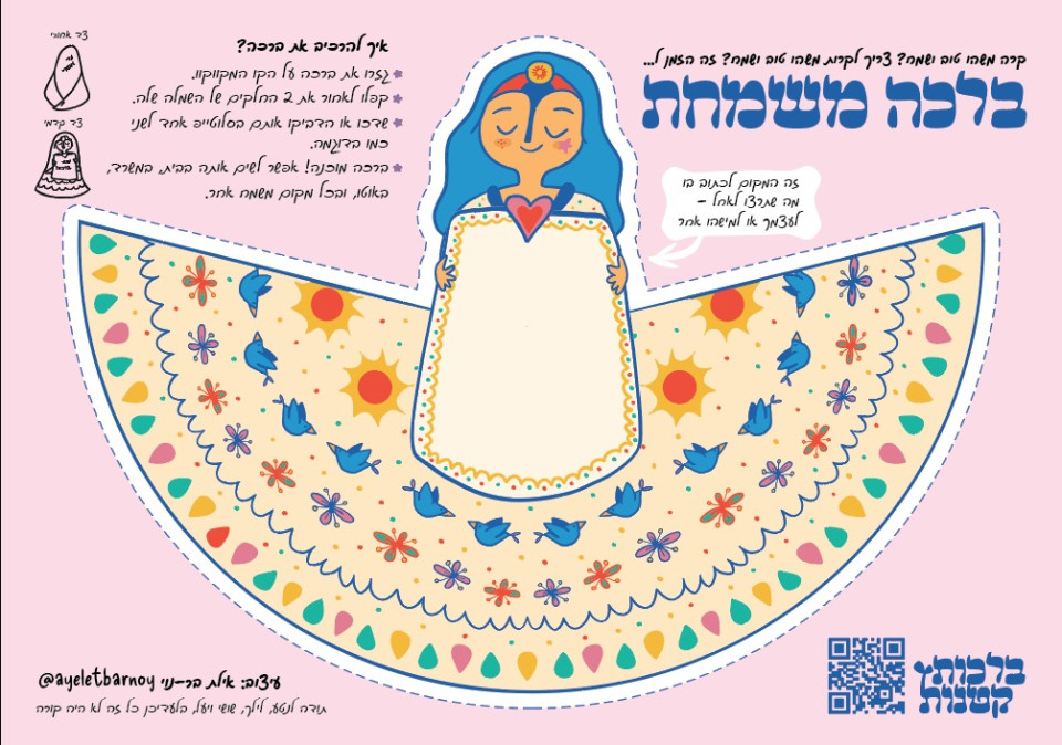 כותבים ברכה במקום המיועד, גוזרים מסביב לדמות המתוקה ומשדכים מאחור. מתקבלת דמות שמחזיקה ברכה. הכל מעוצב ומשמח! תוספת מדליקה לכל מתנה.