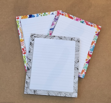 3 עיצובים משמחים בבלוק אחד. סה"כ 50 דפים בבלוק. שורות צבעוניות ואיור מקורי של פרחים/פרפרים/גלים במסגרת. גודל 18*15ס"מ.
