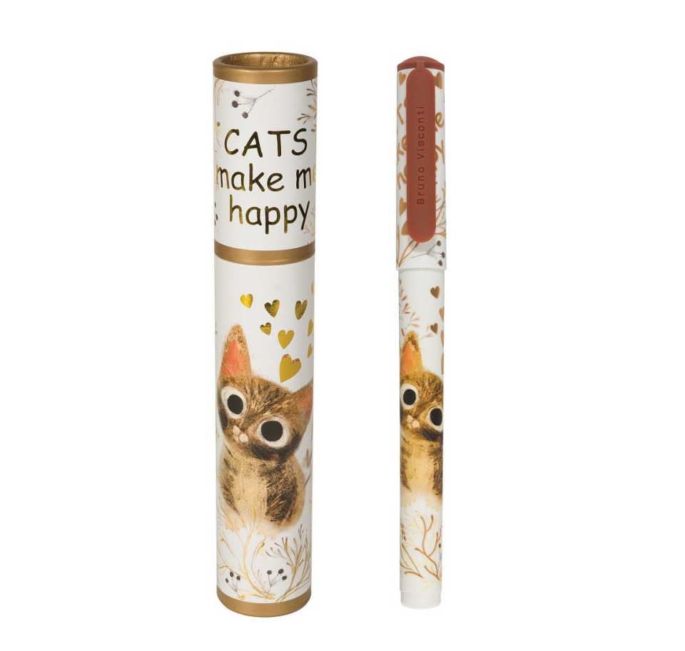 עט בקופסת קרטון גלילית דגם חתול עם עיניים פקוחות