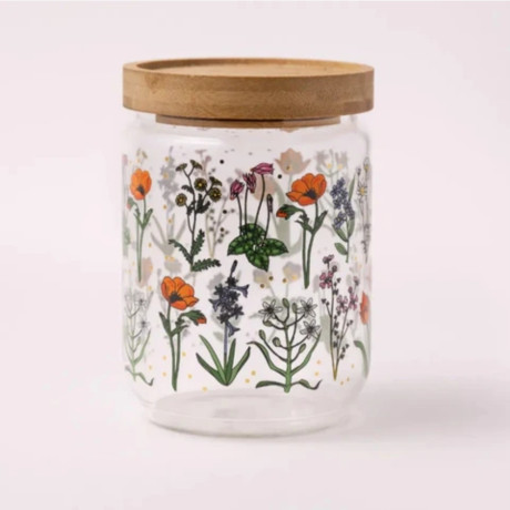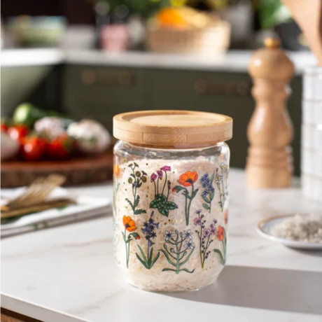 צנצנת מעוצבת עם איורים יפיפיים. הצנצנת נסגרת עם מכסה עץ עם פס סיליקון לאיטום מוחלט. צורת המכסה מאפשרת לערום צנצנות אחת על גבי השניה לחסכון במקום אחסון גם בארון. נהדרת לעיצוב הבית או המטבח, לאחסון של עוגיות או כל דבר אחר שמתחשק לכן. גובה: 12.5 ס"מ קוטר 8 ס"מ תכולה: 550 מ״ל